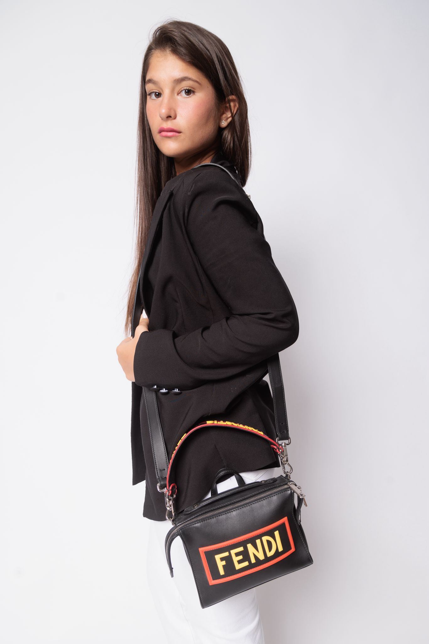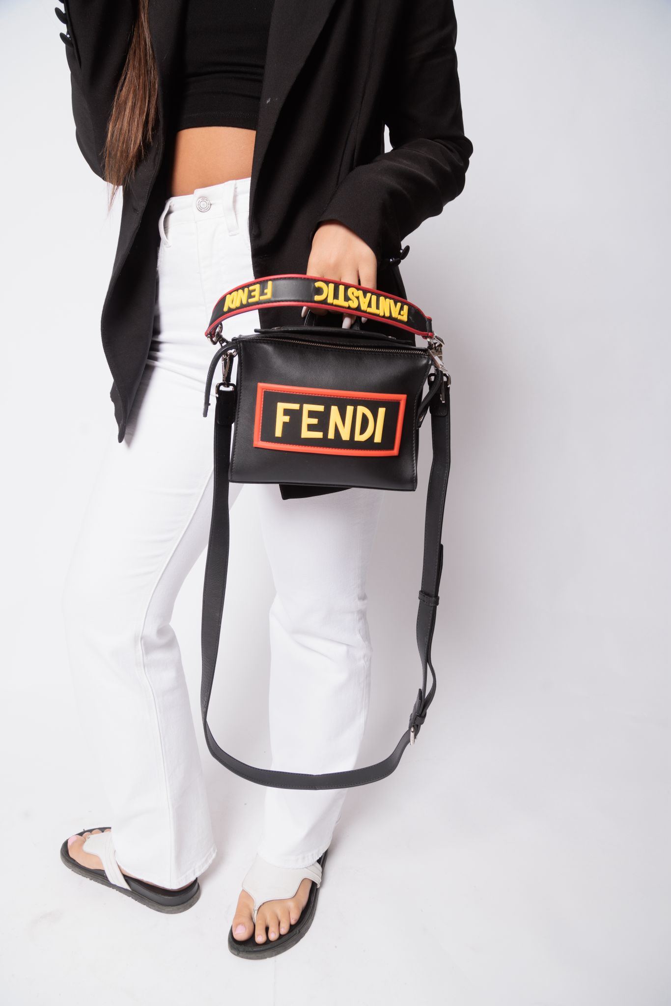 Fendi Yellow Logo Black Shoulder Bag
