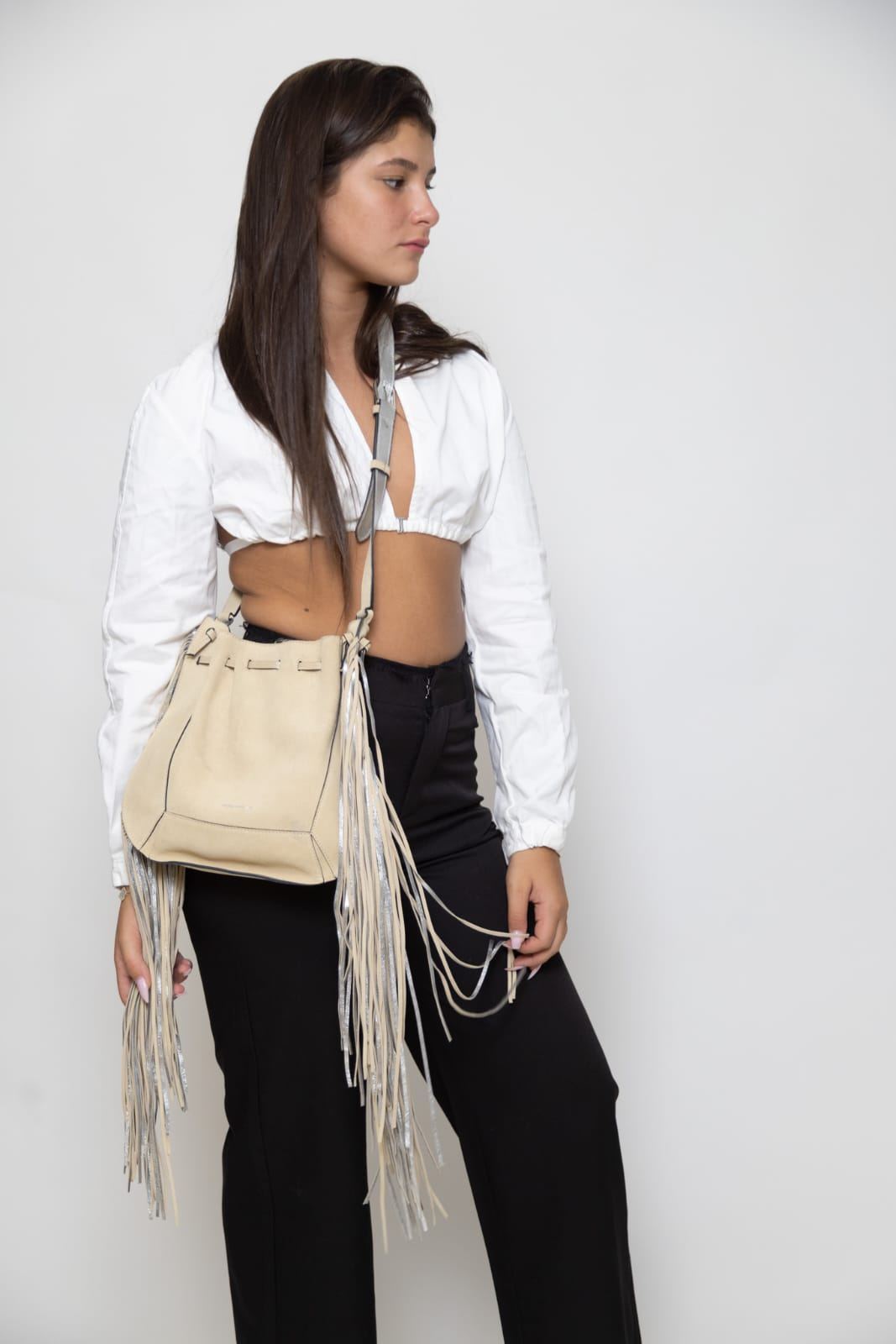 Isabel Marant Beige Oskaf Fringe Shoulder Bag